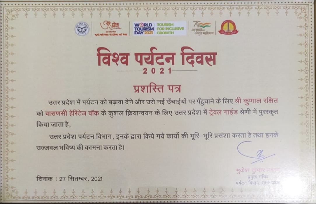 Awarded by the Honorable Chief Minister of Uttar Pradesh Sri Yogi Adityanath Ji.